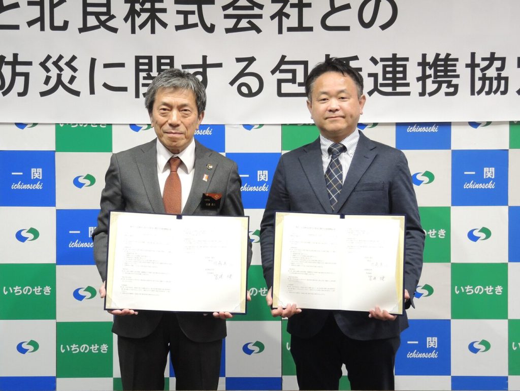 本協定は、北良と一関市が連携し、災害に強い安全・安心なまちづくりに取り組むことを目的に締結されたものです。